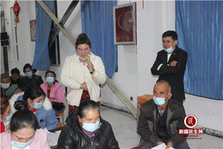 活动一开始,驻村第一书记艾尔肯·吐尔孙向全体村民汇报了一年来村里扶贫工作取得的成效:在实施土地流转之后,全村以产业和就业“双轮驱动”,加大了特色种植、订单农业的覆盖面积,扩大了养殖小区牛羊圈养数量,组织动员全村劳动力进行人岗对接、实现“一人一就业”,在脱贫攻坚的收官之年,向全体村民交上了一份“贫困发生率清零,人均年收入达到13658元”的答卷。