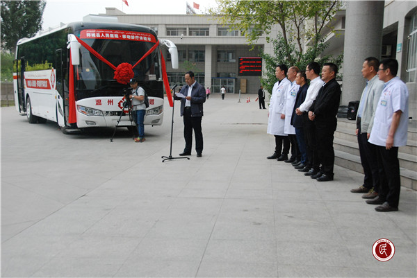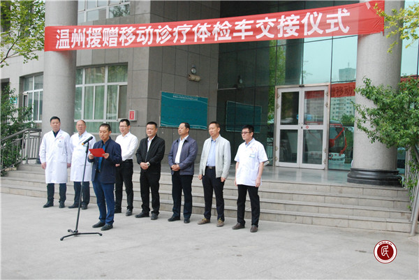 新疆民生网 5月5日上午,温州援赠移动诊疗体检车交接仪式在拜城县人民医院举行,此次交接仪式由温州市援疆指挥部党委书记、指挥长、拜城县委副书记张洪,拜城县委常委、宣传部部长张兵恒,温州市援疆指挥部党委委员、副指挥长、拜城县委常委、副县长黄成骞,以及拜城县卫计委、援疆办、县人民医院有关领导和温州市援疆指挥部全体在拜干部医生、县人民医院各科室主任、护士长等参加。